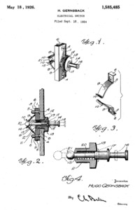 Too often overlooked is Gernsback’s legacy as an inventor and patentee. Gernsback was an inventor and entrepreneur in the budding fields of radio, wireless, and television; he started numerous electrical magazines marketed specifically towards inventors and would-be patentees.[6] Over his lifetime, Gernsback was awarded dozens of patents, many related to radio and telephone components,[7] such as the patents below: