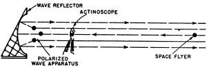 Ironically, an excellent illustration of this weakness is Gernsback’s own favorite example of science fiction’s importance to innovation—the case of radar. Gernsback frequently claimed that he accurately described the invention that would eventually be called “radar” in one of his Ralph 124C 41+ stories, first published in 1911.[68] The protagonist of Gernsback’s 1911 story was a genius from the year 2660 who used a “pulsating polarized ether wave” to pursue a Martian in his “space flyer” and to determine the speed and location of the Martian’s vehicle in space. Gernsback indeed seems to have described a real-world working version of radar—at least a very simple, high-level version of it. He provided a substantial technical description of the invention, and even included an image, shown below.[69]