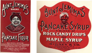 To be sure, the Aunt Jemima case presented a fairly egregious set of facts. All of the selling power associated with the Aunt Jemima mark was the result of the plaintiff’s efforts; the Aunt Jemima mark had no intrinsic selling power.[47] Moreover, the defendant had intentionally duplicated not only the wordmark but also the iconic image of Aunt Jemima, as well as the color and style of the labeling, as shown below.